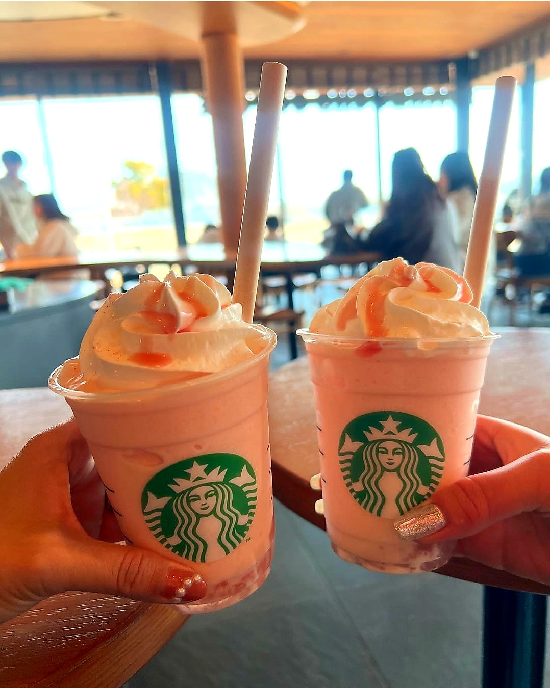스타벅스 전문 바리스타가 강력 추천하는 커스터마이즈 캐러멜 마키아토는 Tall 사이즈(495엔)에 부드러운 두유와 풍성한 무스 폼이 어우러져 깊고 깔끔한 맛을 선사합니다. 계절 한정 메뉴와 특별 커피 콜라보 음료는 방문할 때마다 새로운 미각의 즐거움을 선사해 매번 색다른 경험을 제공합니다. 🍹👍